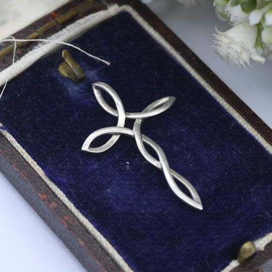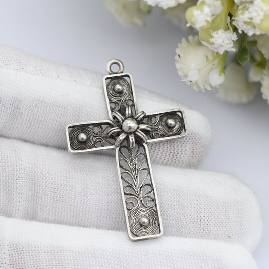 Vintage Silver Filigree Cross Pendant with Ornate Scrolling Design